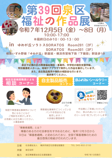 第39回泉区福祉の作品展をゆめが丘ソラトスにて開催します!